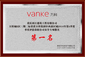 万科E区三期二标荣获万科集团中西部区域2017年3季度综合评估第一名