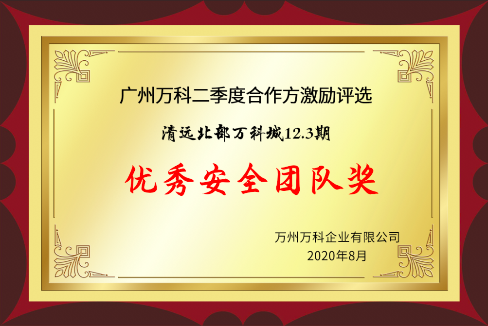 2020年荣获广州万科优秀安全团队奖(3期)